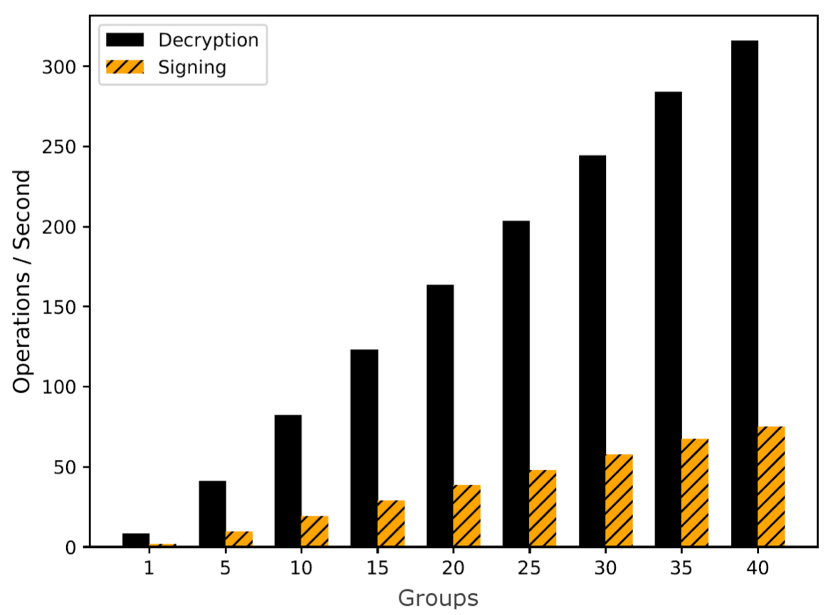 While we demonstrate this resiliency on decryption with three processors, we are efficient for much larger numbers.